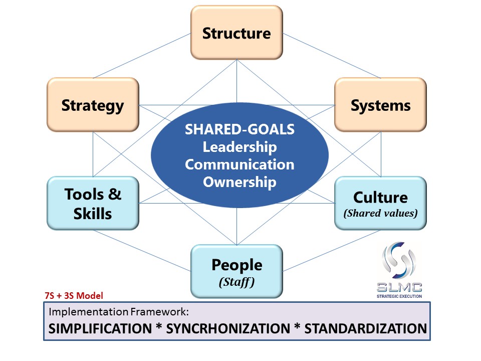 The SLMC “7S+3S” enhancements have proven more effective for our client organizations as they better address the communicating, aligning, ownership and how-to effective lead type of shortfalls which many of our Client organizations are confronted with. These are gels in addition to the structuring and implementing design requisites.