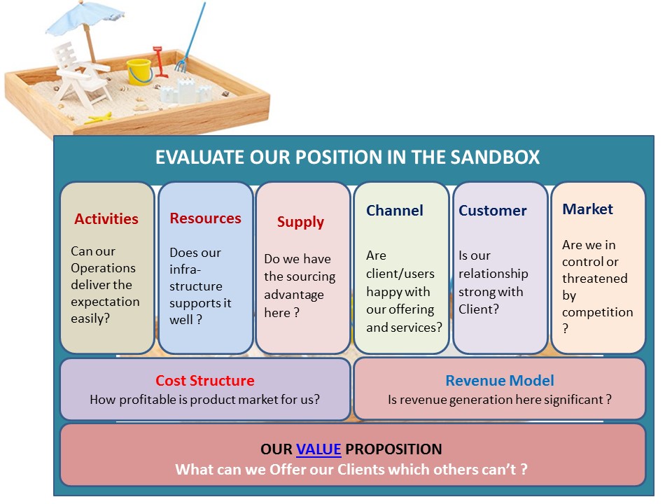 While the canvasing SANDBOX isn’t a brand new concept, its adaptation as a business review, self-assessment tool and work clustering framework by SLMC has certainly been useful for many Clients.